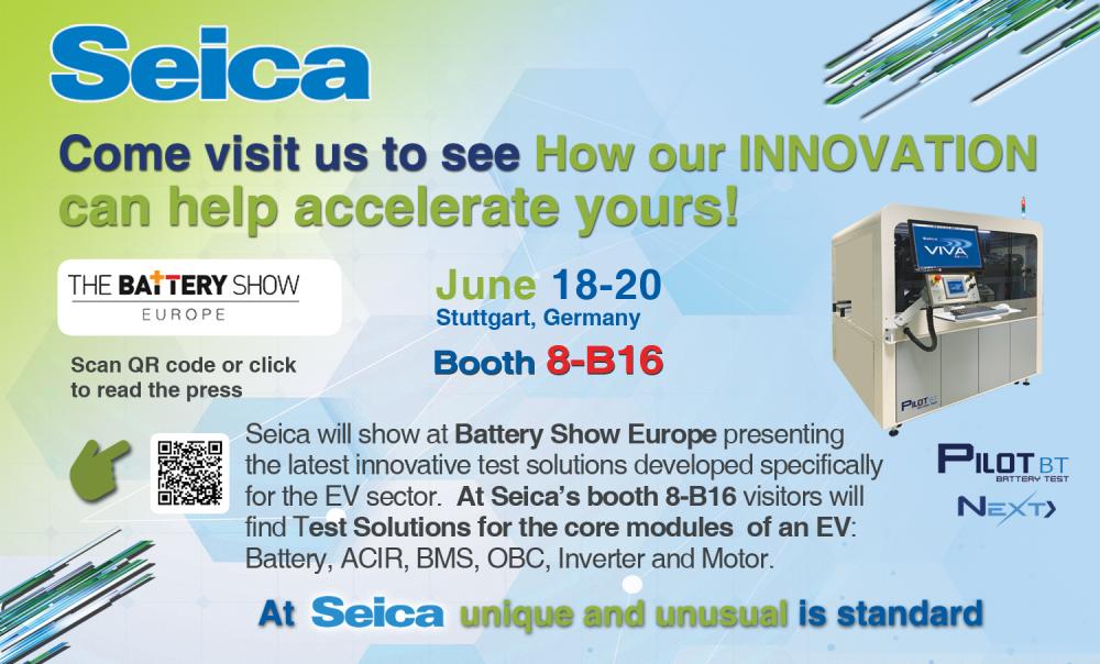 SEICA 榮幸宣布,將再次參加德國斯圖加特電池展,在 8 號展廳 B16 展位展示專為電動汽車行業(yè)開發(fā)的最新創(chuàng)新測試解決方案。
