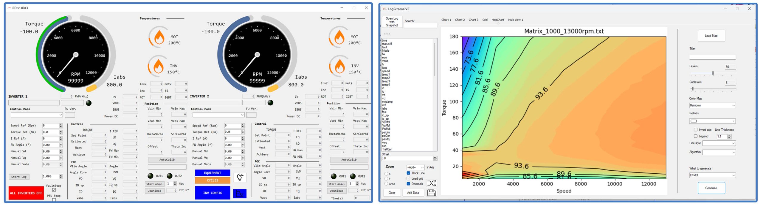 測(cè)試包括使用電機(jī)軸上的扭矩傳感器來(lái)測(cè)量電機(jī)在最高轉(zhuǎn)速下所能承受的力。為了模擬負(fù)載(車輛),需要使用第二臺(tái)電機(jī),它可以充當(dāng)負(fù)載(制動(dòng)電機(jī)),也可以充當(dāng)模擬再生制動(dòng)的電機(jī)。在這種設(shè)置中,制動(dòng)電機(jī)充當(dāng)發(fā)電機(jī),將產(chǎn)生的能量反饋到電網(wǎng)中以降低能耗。該測(cè)試還通過(guò)檢查能耗和探測(cè)振動(dòng)來(lái)評(píng)估電機(jī)的效能。