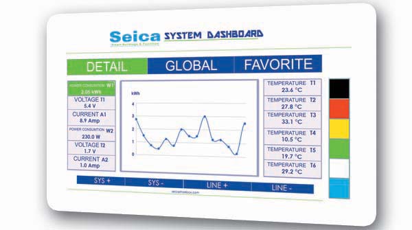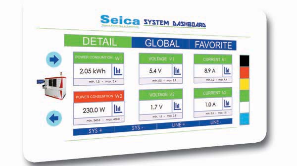 工業(yè)監(jiān)控節(jié)省時(shí)間,并提供了生產(chǎn)線狀況的全面概述。下面的表格代表了 Seica Suite 界面。所有的傳感器都由一個(gè)控制軟件顯示在一個(gè) Windows 平臺(tái)上,并且可以自定義用戶界面。